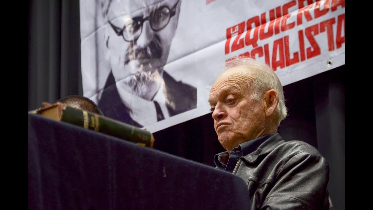 Y, no obstante, a pesar de todas esas presiones, este hombre seguía en la batalla hasta el final. Hasta que finalmente cayó víctima. Aquel triste día. El 20 de agosto del 40, ante un matón estalinista, cobarde traidor, Ramón Mercader. Jacson se hizo llamar. Como Esteban Volkov muchas veces me ha contado, nos ha contado todos sus experiencias. El último testigo ocular de esta tragedia. Y claro, cuando Stalin se enteró del asesinatos de Trotsky, indudablemente él sacaría una botella de champán o vodka. Estaría muy contento de saber que finalmente su enemigo más temido estaba liquidado. Pero lo que no entendió nunca José Stalin, nunca entendió una cosa fundamental que nosotros sí entendemos. El poder de las ideas. Amigos y camaradas, el poder de las ideas, nunca lo entendió.